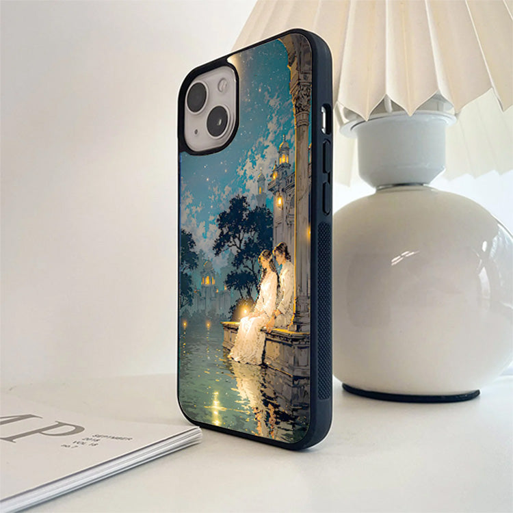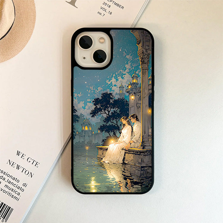 Couple Sitting Under Moon Glass Cover
