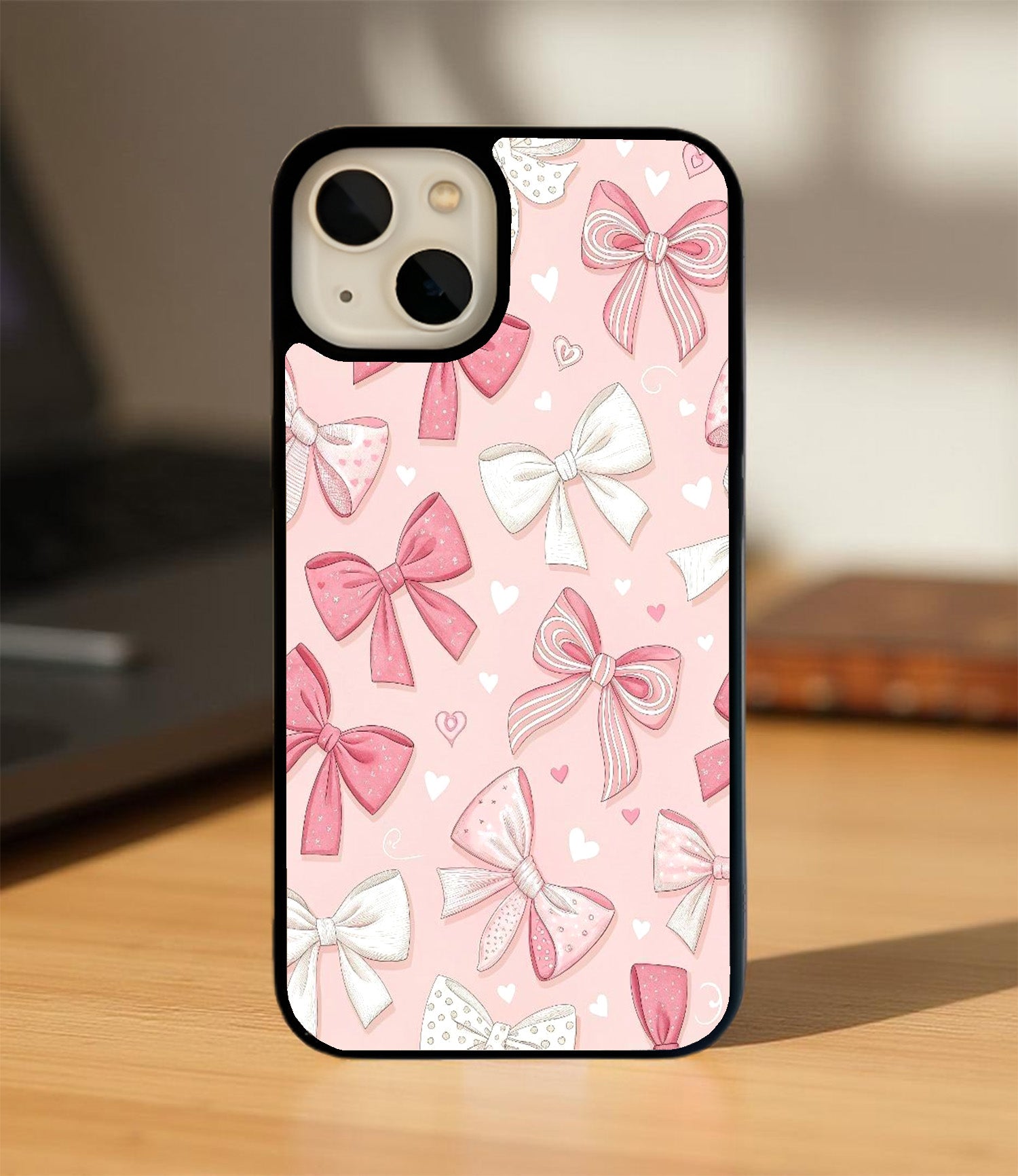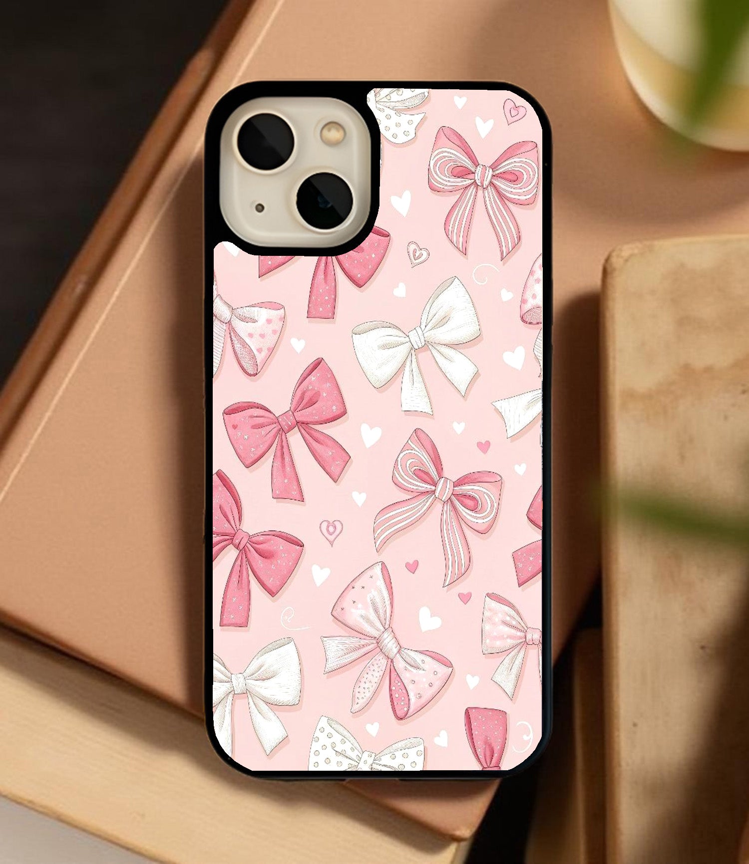 Pink and White Ribbon Bow Glass Cover